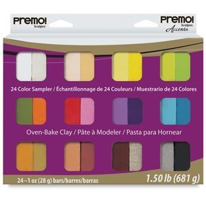 12- 1-ounce bars are perfect for sampling premo! clay Great for creating jewelry and home decor White Granite, Gray Granite, Pink Fluorescent, Yellow Fluorescent, Twinkle Twinkle, Green Glitter, Blue Glitter, Red Glitter, Blue Translucent, Yellow Translucent, Red Translucent and Green Translucent