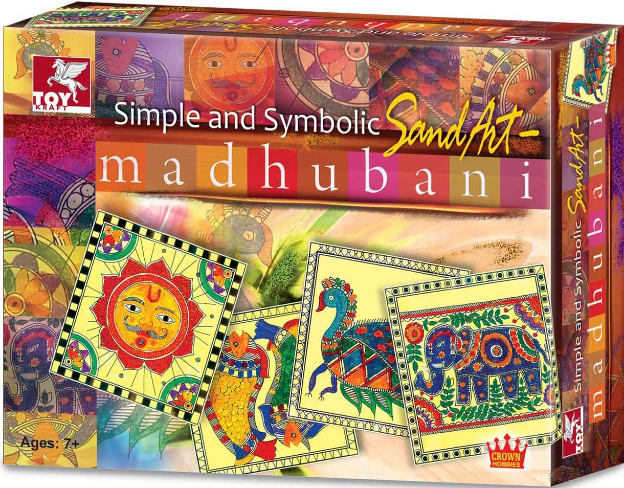 Your kids can now learn the popular Madhubani art form with the ToyKraft Simple and Symbolic sand art kit. It is a complete kit that offers you eight satchets of sand in assorted colours, four pre-printed design templates depicting Madhubani motifs, a jar of adhesive and a paint brush. With this sand art kit, your kids can create some common Madhubani motifs from nature such as the sun, animals, birds and fish. They will enjoy playing with the colourful sand as they decorate these ornate motifs provided with this kit.