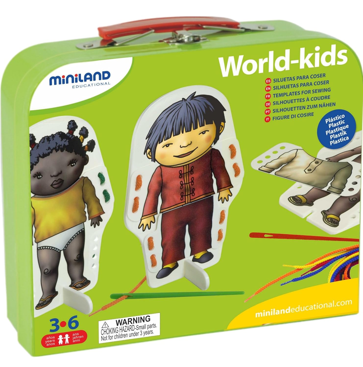 - Miniland New World Kids Sewing Kit helps children practice fine motor skills while learning about children from other cultures