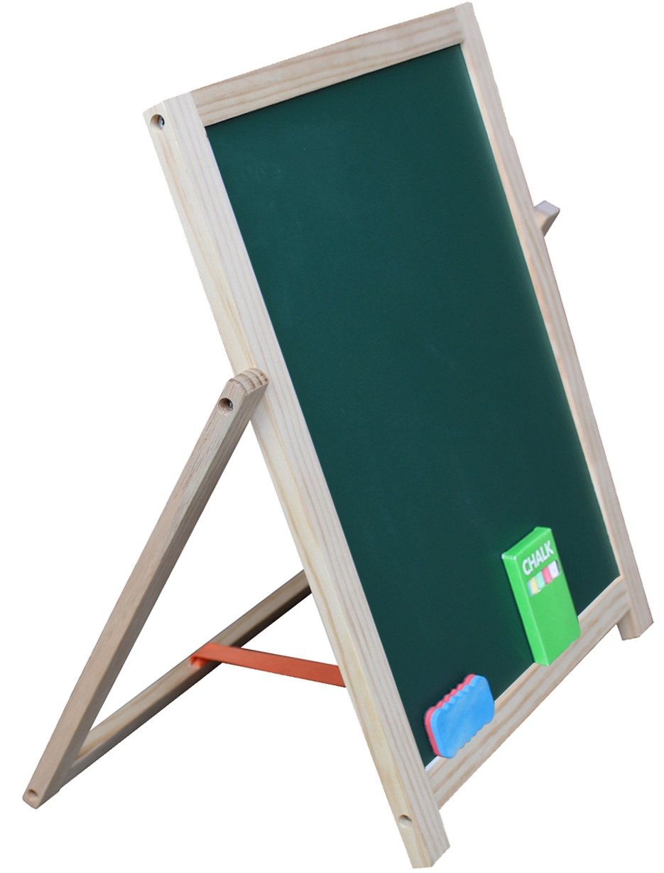 - Magnetic Whiteboard and Green Chalkboard on a Wooden Frame. Switch between the two writing surfaces at will.
