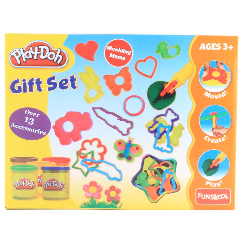 Funskool Playdoh gift set adds colours of joy in any child's life. The set has over 13 accessories and modelling compounds to mould, create and play all day. It also has a crinkler to create textured patterns and designs, and a mini Play Doh extruder to create various shapes.
