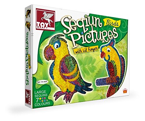 Pictured in Sequins- Birds uses coloured sequins and glue for creating 4 vivid pictures of different birds. The sequin pictures are done on stiff card paper, have been especially selected with children in mind. Six different coloured sequins are provided and adhesive glue serves to bind the sequins on the picture. The Sequin Art pictures can be preserved, presented or displayed for years to come.