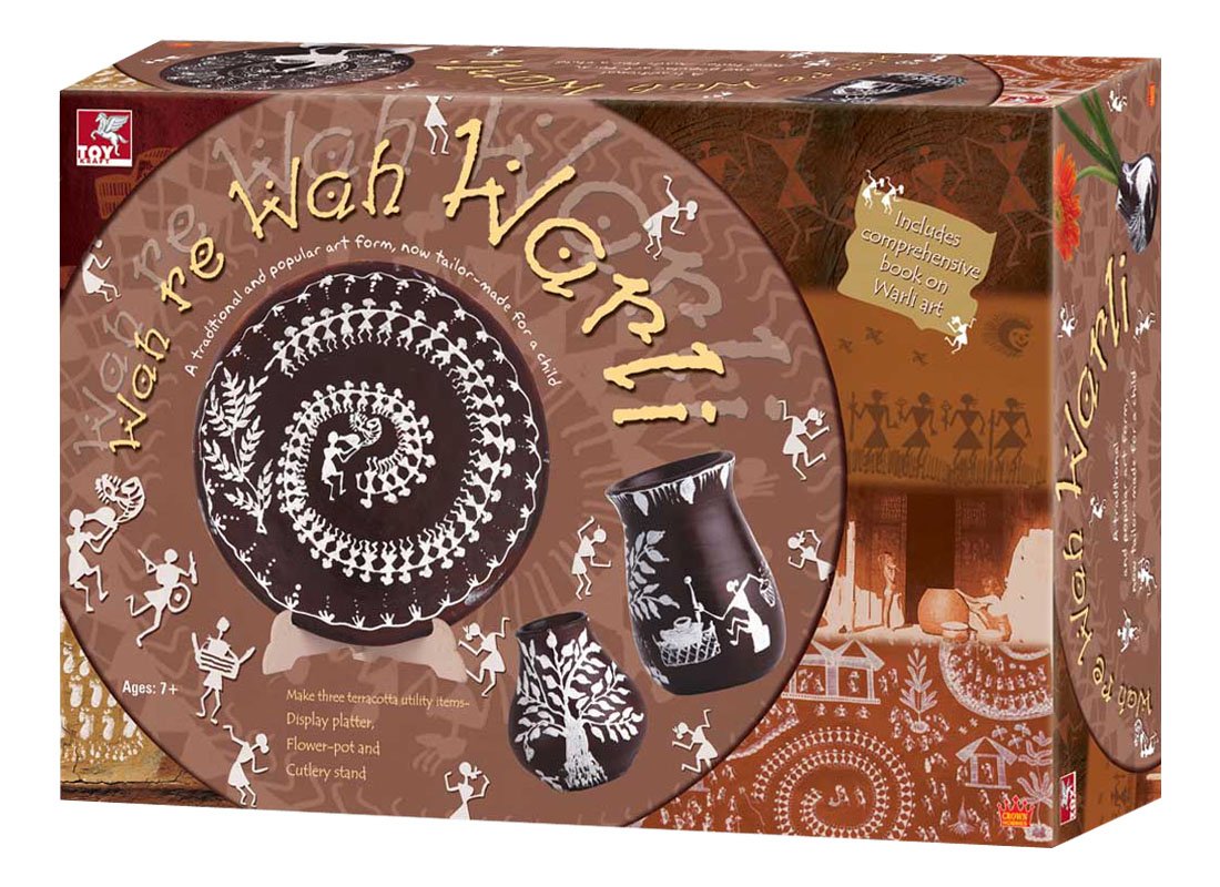 This premium kit introduces young children to traditional Indian Warli art. An appropriate medium terracotta in three forms – display platter, vase and flower pot are provided in the kit. The brown acrylic base colour and the white 3D fine liner tube give outstanding results.